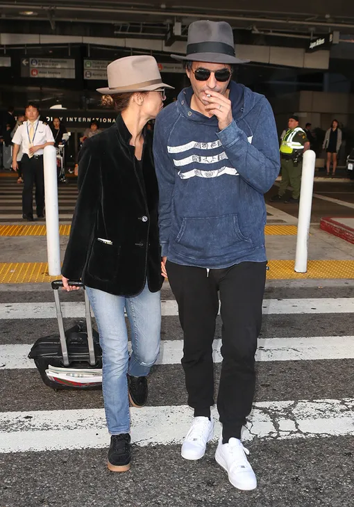 Дуэт в шляпах: Ванесса Паради и Самюэль Беншетри в аэропорту Лос-Анджелеса