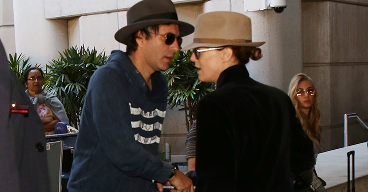 Дуэт в шляпах: Ванесса Паради и Самюэль Беншетри в аэропорту Лос-Анджелеса
