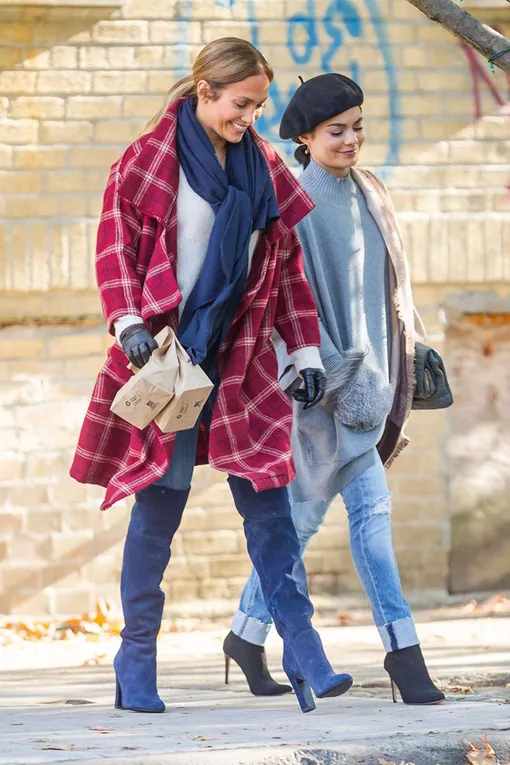 Уже в начале сентября Дженнифер Лопес щеголяла в мехах, а с наступлением холодов неожиданно сменила шубу на тонкое красное пальто, напоминающее плед в широкую клетку, джинсы-стрейч и синие замшевые ботфорты — такой уютный образ Джей Ло выбрала для съемок в фильме Second Act. Пальто Дженнифер — настоящая находка для многослойных образов, его можно накинуть на пуховик-подстежку, теплый свитер или джинсовую рубашку, а под низ поддеть водолазку по примеру Оливии Палермо — вариаций масса, а главное — тепло и женственно.