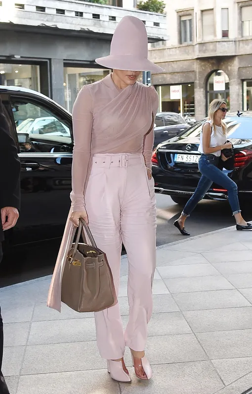 В последнее время мы все чаще видим Дженнифер Лопес в спортивной экипировке: 50-летняя дива активно готовилась к съемкам в фильме «Стриптизерши», но и с выходом картины на экран не снизила нагрузку и продолжает шлифовать рельеф в фитнес-клубах. И все же периодически Джей Ло напоминает, что всерьез претендует на звание иконы стиля: по модной столице Италии — Милану — певица и актриса прогулялась в монохромном пастельно-розовом аутфите от Sally LaPointe. Певица и актриса выбрала для променада брюки с высокой талией, просвечивающий топ со шлейфом, мюли с прозрачными вставками и высокую шляпу из фетра, благодаря которой тяжело узнать даже такую популярную туристку, как Дженнифер Лопес.