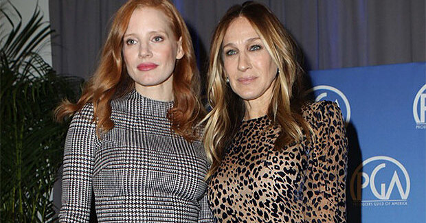 Скандал, связанный с сексуальными домогательствами продюсера Харви Вайнштейна, мотивировал многих звезд поддержать права женщин. Джессика Честейн и Сара Джессика Паркер тоже решили внести свой вклад и выступили на конференции в Нью-Йорке, посвященной женщинам в киноиндустрии, их влиянию и возможностям в этой сфере. Актрисы были похожи на сестер-близняшек, не зря в их именах есть общее — Джессика, выбрав платья миди-длины: Честейн остановила свой выбор на закрытой модели Ralph Lauren в клетку и черных шпильках с серебряными перемычками, а Паркер предпочла приталенный вариант с леопардовым принтом и атласные лодочки.