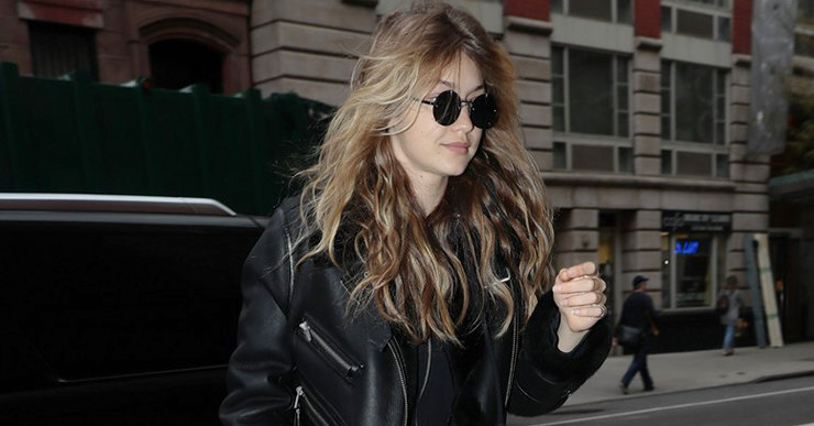 Джиджи Хадид в утепленной косухе и очках кота Базилио в ветреном Нью-Йорке