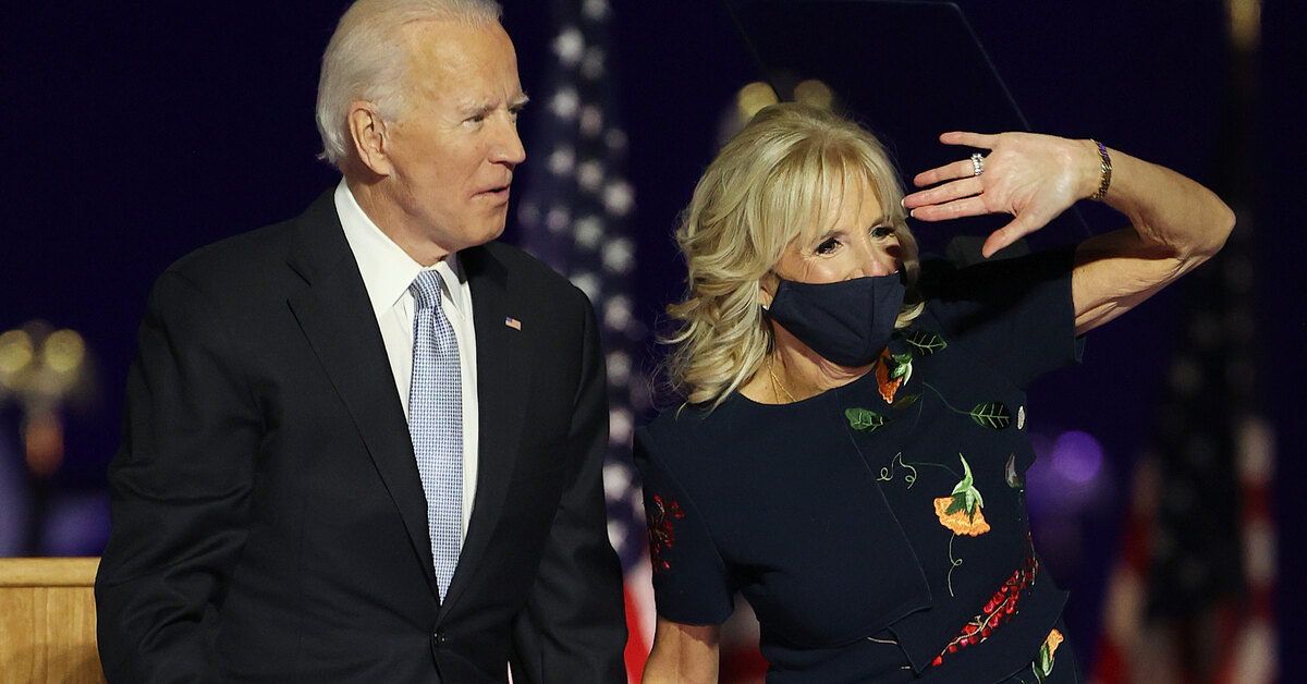 Политик выступил с эмоциональной речью в Уилмингтоне, штате Делавэр. Вместе с мистером Байденом на сцену поднялась и его жена Джилл. Новая первая леди выглядела безупречно в асимметричном платье Oscar de la Renta с флористическим принтом на черном фоне. Наряд оказался очень символичным. Создателями платья из круизной коллекции бренда этого года стали дизайнеры Фернандо Гарсия и Лора Ким, мигранты в США. Сам Оскар де ла Рента тоже когда-то приехал в Америку из Доминиканской республики. Джо Байден намерен пересмотреть политику Трампа в отношении мигрантов — и позволить тем, кто был незаконно ввезен в США в детстве, остаться в стране уже на законных основаниях.