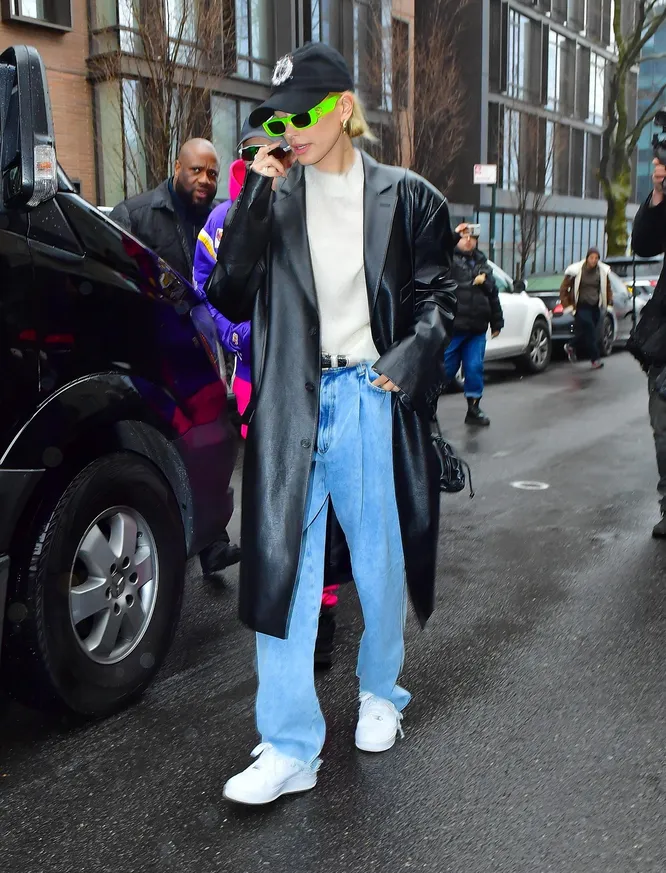 Джинсы бойфренда, «папин» плащ и детские очки: Хейли Бибер все еще королева оверсайза