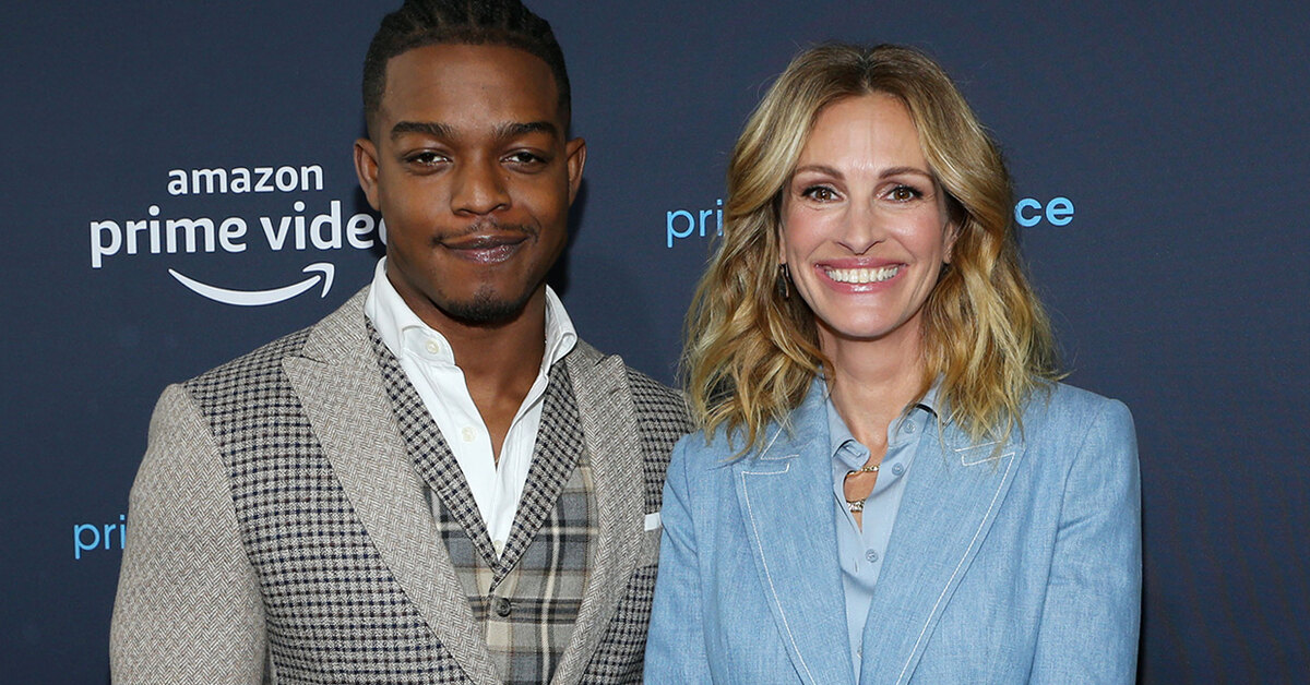 Джулия Робертс в небесно-голубом костюме в Голливуде