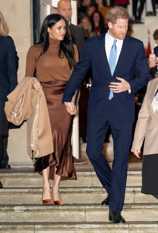 Согласно принципам психологии цвета, коричневый оттенок символизирует материальное благополучие и стабильность, а оттенки орехового — острую потребность в безопасности и причастности к семье. Любопытно, что именно перед тем, как объявить об отречении от королевских дел, Меган Маркл появилась на публике в монохромном наряде в коричневых тонах.