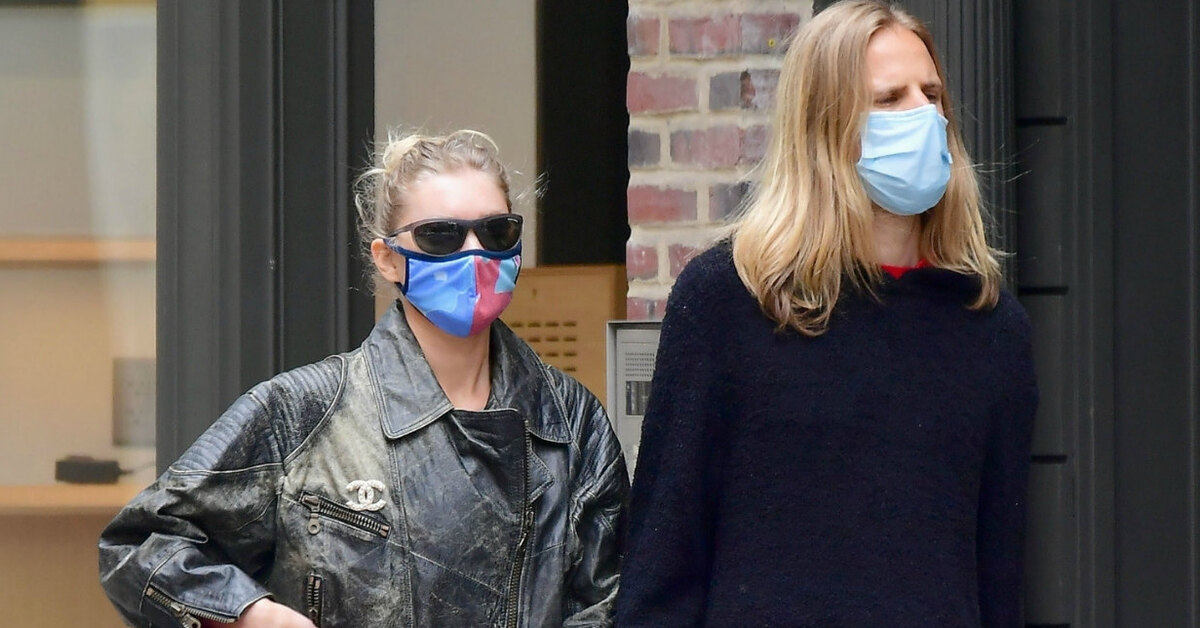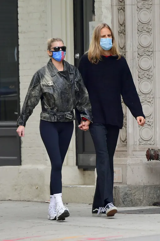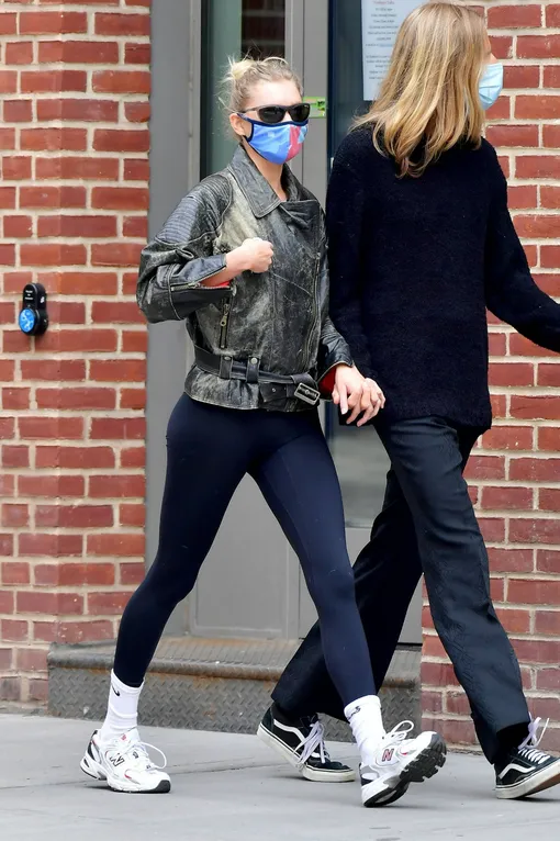Звезда очень внимательна к деталям: и этот раз тоже не стал исключением. «Ангел» Victoria's Secret надела высокие белые носки поверх легинсов, а в качестве обуви выбрала расслабленные кеды New Balance. Волосы она собрала в небрежный пучок, а из аксессуаров на Эльзе были футуристичные солнечные очки и разноцветная защитная маска.