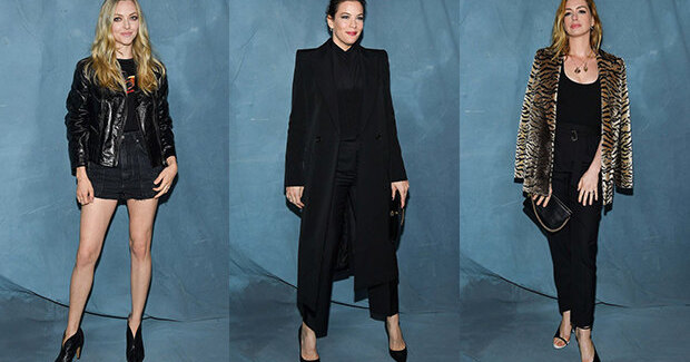 Интересно, что другие зрительницы тоже выбрали темные наряды. Так, на показе была замечена Лив Тайлер, которую уже давно не было видно на публике, — поклонники отметили свежий и похорошевший вид 41-летней актрисы, которая почти не меняется. Она отдала предпочтение черному комплекту из строгих брюк, рубашки и прямого пальто. В стиле рок-шик оделась Аманда Сейфрид, чем, пожалуй, отличилась от всех: ее выбор пал на джинсовую юбку, кожаную куртку, ботильоны с интересным вырезом и футболку с принтом. Элегантные наряды выбрали актрисы Руни Мара и Изабель Юппер: первая — черное пальто с роскошным длинным поясом, завязанным бантом, а вторая — черное платье с плечиками и темные капроновые колготки.