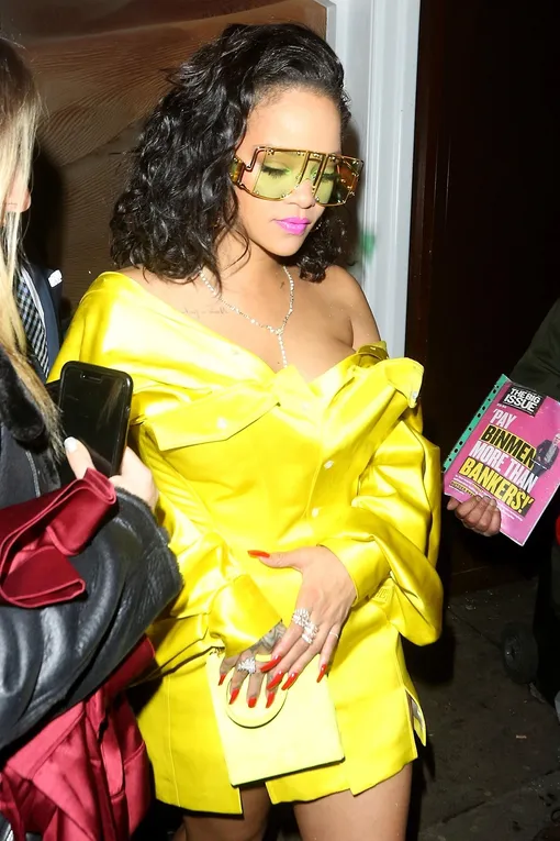 За последние пару лет звезды стритстайла «наигрались» с оптикой в узких оправах, и теперь модный маятник качнулся совсем в другую сторону: этим летом глаза всех модниц будут защищать от ультрафиолета очень широкие очки-маски — в духе аксессуаров лыжников и сноубордистов. Одной из основоположниц тренда стала Рианна, которая не в первый раз выходит в свет в подобных моделях и выпускает коллекции с актуальным дизайном под собственным брендом Fenty. Причем носить их она предпочитает в сумерках: вчера диву заметили в Лондоне в канареечном тотал-луке (какое яркое прочтение монохрома!). Рири выбрала для выхода короткое платье-рубашку с пышными рукавами, остроносые туфли с тесемками на щиколотках, миниатюрную сумку Medea и массивные очки с желтыми стеклами — с такой цветотерапией никакая весенняя хандра не грозит.
