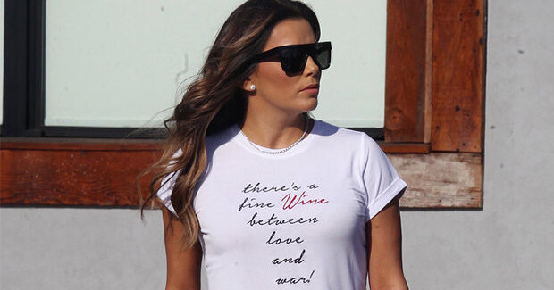 Футболки-плакаты с феминистскими лозунгами в этом году стали главным предметом гардероба, сменив фанатские тишотки рок-групп. За год существования We should all be feminists (впервые эта фраза на майке появилась на показе Dior в сентябре 2016 года) урок по гендерному равноправию мы выучили на отлично, пришло время образовываться дальше. Теперь Ева Лонгория предлагает перейти к изучению международных отношений. Ее «винный» (wine) совет обыгрывает идиому о тонкой грани (line), которая пролегает между любовью и войной. Запоминаем!