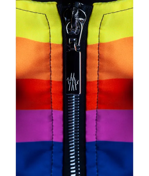 И действительно, если в своих частях проекта Симон Роша играет в Снежную королеву, Крейг Грин экспериментирует с высокими технологиями, а Пьерпаоло Пиччоли дает барочный концерт, то сам Куинн с видимым удовольствием умножает сущности. «Да, я настоящий максималист, – смеется он. – Люблю принты, причем чем больше, тем лучше, цветы предпочитаю не нежные и аккуратные, а крупные и эффектные, совсем не боюсь анималистических тотал-луков – ни леопарда, ни зебры. И еще мне очень нравится женственная горнолыжная форма из 60-х, на нее я и ориентировался». За ретроромантику в версии британца отвечает цветовая гамма – салатовая, светло-желтая и небесно-голубая – и некоторые силуэты, например куртки, затянутые резинками чуть выше талии. А вот все остальное выглядит вполне современно, и пусть ромашки на комбинезонах с высоким горлом вас не обманывают. Отдельного внимания заслуживают аксессуары: дутые, как пуховики, сумки с радугой (в этом сезоне такие мягкие игрушки выпустили многие дизайнеры, но у Куинна они получились самыми яркими), перчатки и колготки в горошек, «волосатые» шапки и шлемы. «Все уже заметили, что мне нравится прятать лица моделей, – усмехается Ричард. – А я просто хочу их – и немножко себя – защитить от пристального внимания». На вопрос, будет ли он участвовать в проекте Moncler Genius в следующем году, Куинн задумчиво кивает: «Конечно, если опять позовут. Ведь всегда приятно знать, что гением тебя считает не только твоя мама».