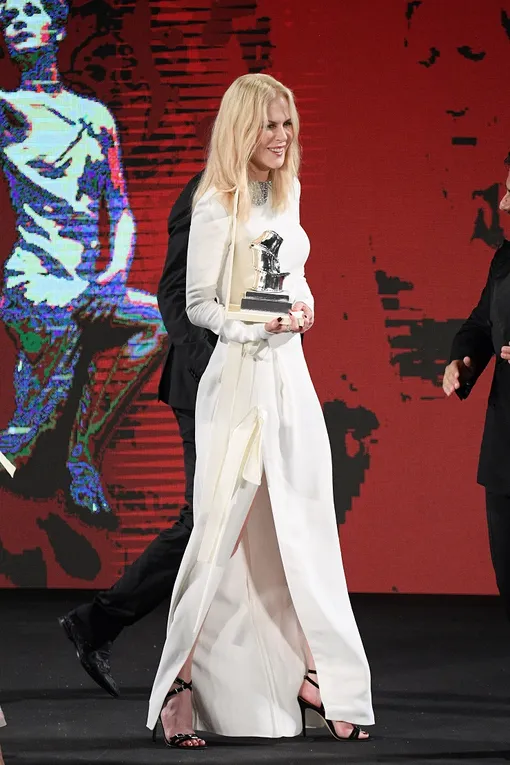 Николь Кидман прибыла в Италию, чтобы посетить Taormina Film Festival. Накануне вечером актриса получила награду и в ходе мероприятия сменила сразу два наряда. На красной дорожке знаменитость дефилировала в миди-платье цвета фуксии, а после вышла на сцену в белоснежном одеянии в пол с высоким разрезом на юбке. Оба образа смотрелись очень сдержанно, но при этом сексуально. Как и всегда у Николь!