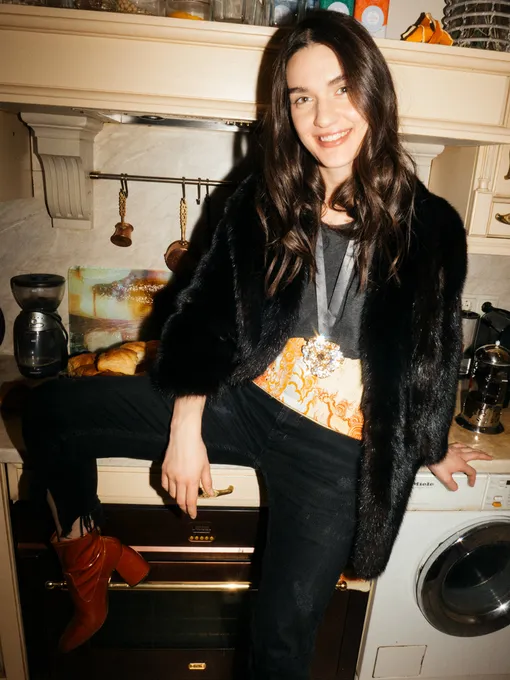 На пальто Celine наткнулась совершенно случайно – зашла в магазин, не собираясь ничего покупать. Но это был тот самый случай, когда видишь вещь, и, пока она еще на вешалке, понимаешь, что она сшита для тебя либо украдена из твоего гардероба и почему-то висит в магазине. Когда примерила, поняла, что не могу уйти без этого пальто. Розовый песец, который я держу в руках, – это меховой бренд Cool!, основанный маминой подругой, она делает эти меха во Франкфурте. Очень крутой цвет – нигде не встречала такого песца. Ему много лет, и я очень люблю иногда его выгуливать – он поднимает настроение не только мне, но и всем, кто меня в нем видит.