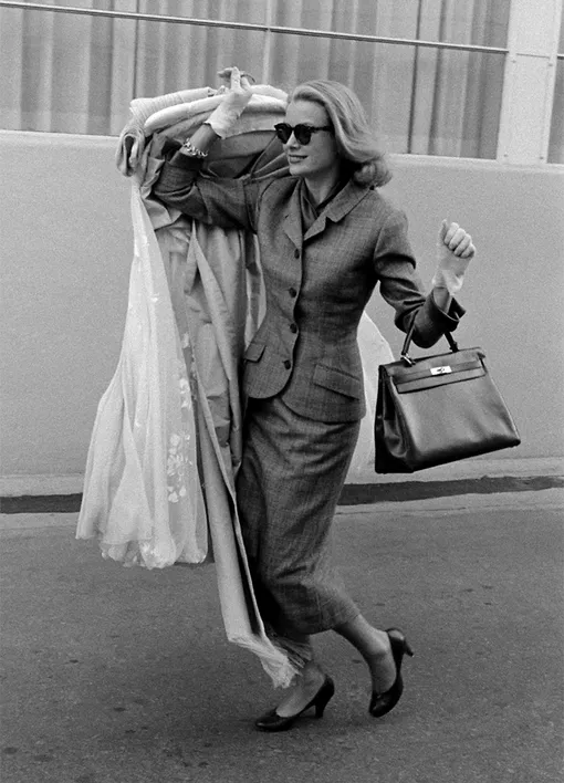 Усомниться в своем статусе иконы стиля звезда фильмов «Окно во двор» и «Поймать вора» не позволяла никогда. Даже в такой суматошный день, как тот, что запечатлен на этой фотографии. Грейс бежит по Лос-Анджелесу с ворохом платьев, которые через несколько часов отправятся вместе с ней через океан навстречу новой жизни в Монако, где ее будут звать «ваше высочество». Дорожный клетчатый костюм с юбкой миди она дополнила лодочками на невысоком каблуке, шейным платком, контрастными перчатками и сумкой, которая пока еще не носит имени своей самой знаменитой обладательницы. Вот в таком строгом наряде Грейс, эмансипированная голливудская актриса, и поднимется по трапу трансатлантического самолета. А сойдет с него уже Грейс, без пяти минут княгиня, в ультраженственном пальто силуэта new look и белоснежной шляпе.