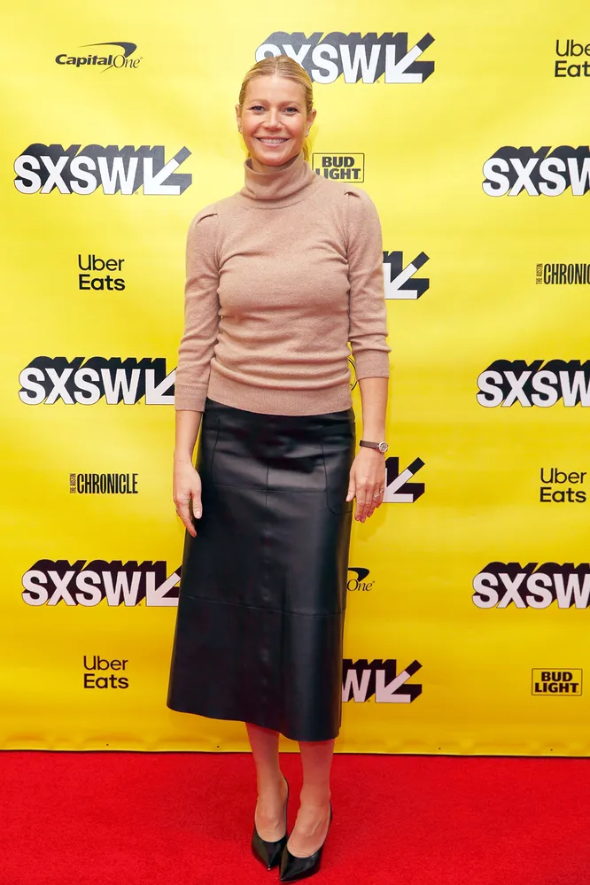 Фестиваль SXSW, который прямо сейчас традиционно проходит в Остине, знаменит не только своими кинопремьерами, но и пресс-конференциями, связанными с технологиями и бизнес-мероприятиями. Вчера Гвинет Пэлроу приняла в нем участие именно в статусе бизнес-леди, а не актрисы: она встретилась с поклонниками и рассказала о своем лайфстайл-проекте Goop. Гвинет появилась перед собравшимися в водолазке в оттенке кофе с молоком и кожаной миди-юбке с карманами — все от бренда G. Label — и паре черных лодочек из глянцевой кожи. Своим лаконичным аутфитом Пэлтроу явно желала подчеркнуть, что актерская профессия сейчас для нее отошла на второй план, а в приоритете — создание успешной бизнес-империи.