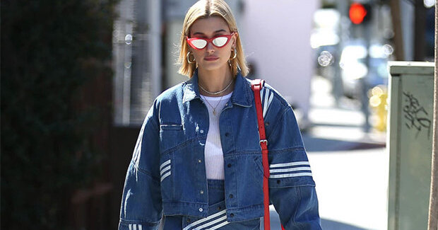 Джинсовый «верх» и «низ» снова могут сосуществовать вместе. Начало этому положил бренд Calvin Klein, посвятив такому сочетанию целую рекламную кампанию, а Хэйли Болдуин продолжает нести тенденцию в массы. Модель была замечена в Лос-Анджелесе в объемной куртке и мини-юбке из денима от adidas. В дополнение к комплекту девушка выбрала красную сумку Supreme x Louis Vuitton, солнцезащитные очки в алой оправе и белые кроссовки.