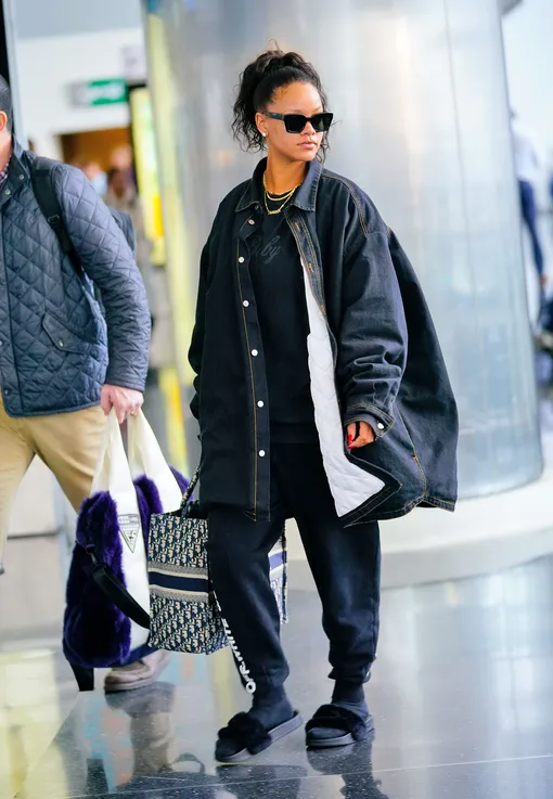 Именная сумка Dior и меховые тапочки: никто не одевается в аэропорт лучше, чем Рианна