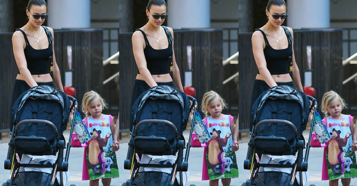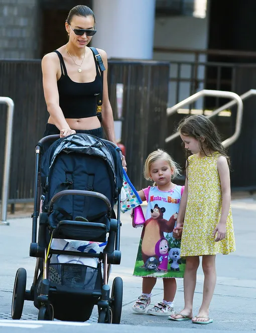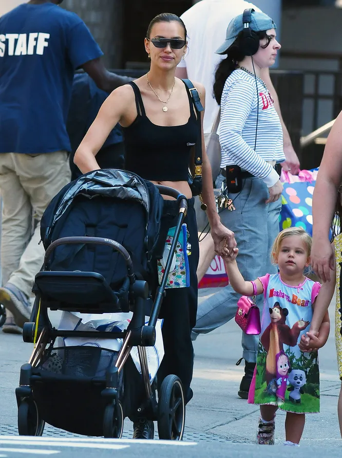 Ирина Шейк и Лея в платье с персонажами «Маши и Медведя» гуляют по Нью-Йорку