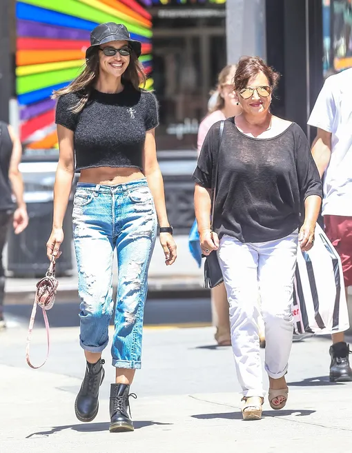 Ирина Шейк в кроп-топе и джинсах с потертостями отправилась на шопинг с мамой