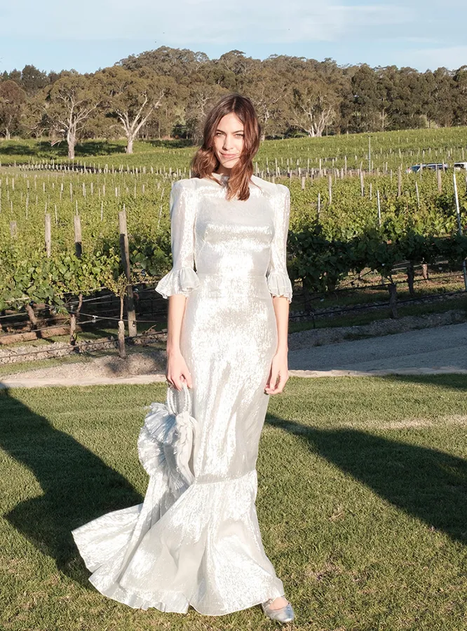 Алекса Чанг умеет удивлять: на днях она посетила винодельню Bird in Hand в Аделаиде, одевшись как истинная аристократка. Для экскурсии дизайнер выбрала закрытое вечернее платье с серебристым отливом, идеально подчеркнувшее ее стройную фигуру. К этому наряду она также подобрала сумку в виде сердца, выполненную из того же материала, и строгое прямое пальто ниже колена. Подозреваем, что прогуливаться вдоль виноградников в таком виде знаменитости было непросто, но красота требует жертв — и жертвы эти в данном случае точно были оправданны!