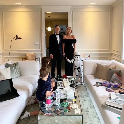 Еще до президентства Дональда Трампа его дочь Иванка считалась одной из самых стильных девушек Америки, а став правой рукой главы государства, и вовсе не сходит со страниц модных СМИ. Вчера вечером главная блондинка Америки в очередной раз продемонстрировала миру свой утонченный вкус: вместе со своим супругом Джаредом Кушнером она отправилась на торжественный ужин. Для выхода в свет Иванка выбрала элегантное бархатное платье с открытыми плечами в стиле старого Голливуда. Перед тем как отправиться на мероприятие, супруги сфотографировались вместе с детьми Арабеллой, Теодором и Джозефом. Идеальная семья!