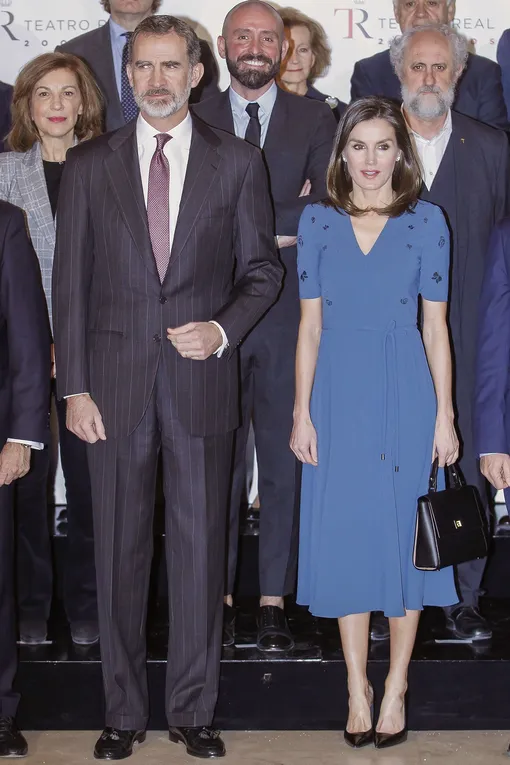 Если причудливые и гипертрофированные образы звезд стритстайла нам сложно повторить в реальной жизни, то гардероб королевы Летиции неизменно вызывает восхищение. Первая леди Испании часто выходит в свет в одежде из масс-маркета (а значит, каждая может себе позволить эти же покупки), деликатно вписывает главные тренды в официальный стиль и умеет создавать самые нескучные деловые образы. Вчера супруга короля Филиппа VI вновь продемонстрировала отменный вкус, выбрав для мероприятия в Фонде Королевского театра миди-платье Bottega Veneta в приглушенном синем цвете. Этот сложный оттенок вряд ли подойдет блондинкам, а вот шатенкам и брюнеткам точно будет к лицу, и даже с классическими аксессуарами — черными лодочками и сумкой — будет смотреться одновременно лаконично и эффектно.