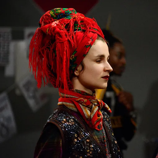 Я изучаю, как люди одевались в древности на Руси, – это же нереальная красота! Не знаю ни одного дизайнера, кто может сейчас сделать что-то подобное. Старинные ремесла утеряны, на смену пришли ремесла западного образца – кроя и пиджаков. Мы забыли, в чем смысл вышивок, почему они такого цвета, какие слои одежды надо носить для души, какие — на улице. Мы абсолютно отделились от этого и покупаем одежду известных брендов, которые плодят мусор по всему миру, — такая ситуация не только в России. К сожалению, сейчас у нас практически нет доступа к традиционной одежде, но я могу изучать традиционную ремесленную одежду африканских стран. Когда углубляешься в это, становится очевидна связь народов мира, их общее наследие. Похожие узоры можно найти и в Марокко, и в Индии, и в России. Раньше люди делали одежду и украшения из того, что находили вокруг, в природе, например, добывали краску из какого-то растения, плели венки из листьев. Я делаю то же самое — собираю все, что есть вокруг: банки кока-колы, пластиковые пакеты, мусор, секонд-хенд и всякий ширпотреб, который продается за доллар. Все это я использую. Мой процесс не сильно отличается от процесса создания одежды тысячу лет назад.