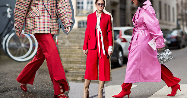 За свежими идеями, а главное - с вопросом, с чем носить алые брюки и комбинезоны, мы обратились к хроникам мирового стритстайла. Судя по образам модниц, модели в этом сезоне должны быть широкими и очень широкими — хорошо бы, что снизу были небольшие кокетливые разрезы. А сочетать их желательно с клеткой — пальто и блейзерами, это уж как погода позволит, тренчами самых разных оттенков и таким же алым верхом — худи, рубашками и объемными свитерами.