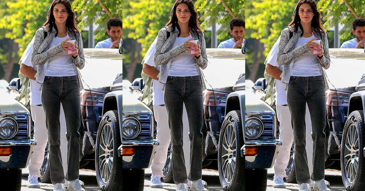 Нет ничего комфортнее, чем белая футболка в комплекте с любимыми прямыми джинсами. И даже супермодели не отказывают себе в этом удовольствии. Но если ты Кендалл Дженнер, а значит, звезда стритстайла, то базовым набором не обойтись. Поэтому девушка разбавила образ рубашкой со змеиным принтом в серых оттенках, которая гармонировала с темными джинсами и белым топом. Все гениальное просто.