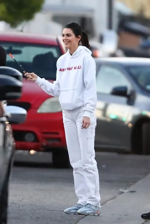Кендалл Дженнер вместе со всей своей семьей посетила воскресную службу в одной из церквей Лос-Анджелеса. Топ-модель выбрала для этого монохромный белоснежный образ, основой которого послужили прямые джинсы с высокой талией: подобные варианты сейчас на пике популярности. Свой наряд девушка разбавила черным ремнем и грубыми ботинками в тон. Позднее она переобулась в светлые кроссовки, накинула на себя худи с красноречивой надписью Art That Kills (с англ. «Искусство, которое убивает») и отправилась на встречу с друзьями. Вот что значит универсальный образ!
