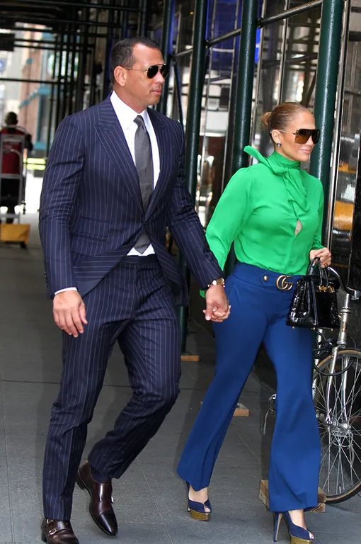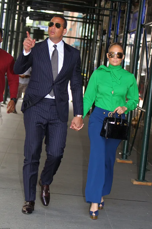 Стоит певице и ее бойфренду на два дня пропасть с радаров папарацци, как мы начинаем по ним скучать. Пара не только выглядит влюбленной, но и подтверждает это сочетающимися образами. Сначала в Италии, когда Дженнифер надела белое кружевное платье, а ее возлюбленный — однотонные джинсы и лонгслив, теперь и на днях в Нью-Йорке. Оба явно вдохновлялись ретро: Джей Ло выбрала тотал-лук Gucci с широкими брюками и закрытой блузкой с бантом на шее, Алекс поддержал подругу строгим темно-синим костюмом в полоску — как у мафиози 40-х или дельцов с Уолл-стрит 80-х. Вкусы совпадают у них и в выборе аксессуаров: зеркальные очки без оправы — явные фавориты Лопез и Родригеса.