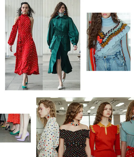 Вспоминая ключевые образы главной героини «9 1/2 недель» в исполнении Ким Бейсингер, дизайнер маркирует каждый из них узнаваемой вещью. В совокупности они складываются в законченный сезонный гардероб, где есть все, чтобы быть и смешной, и романтичной, и сексуальной, и строгой. Судите сами: в программе — аляповатые мохеровые свитера, связанные на манер коллажа, цветной горох, платья из ситца, блузы с пухлыми оборками и дутыми буфами, открывающие ключицы для поцелуев корсеты и даже хрестоматийное средство вложения капитала волков с Уолл-стрит — брючные костюмы pinstripes.