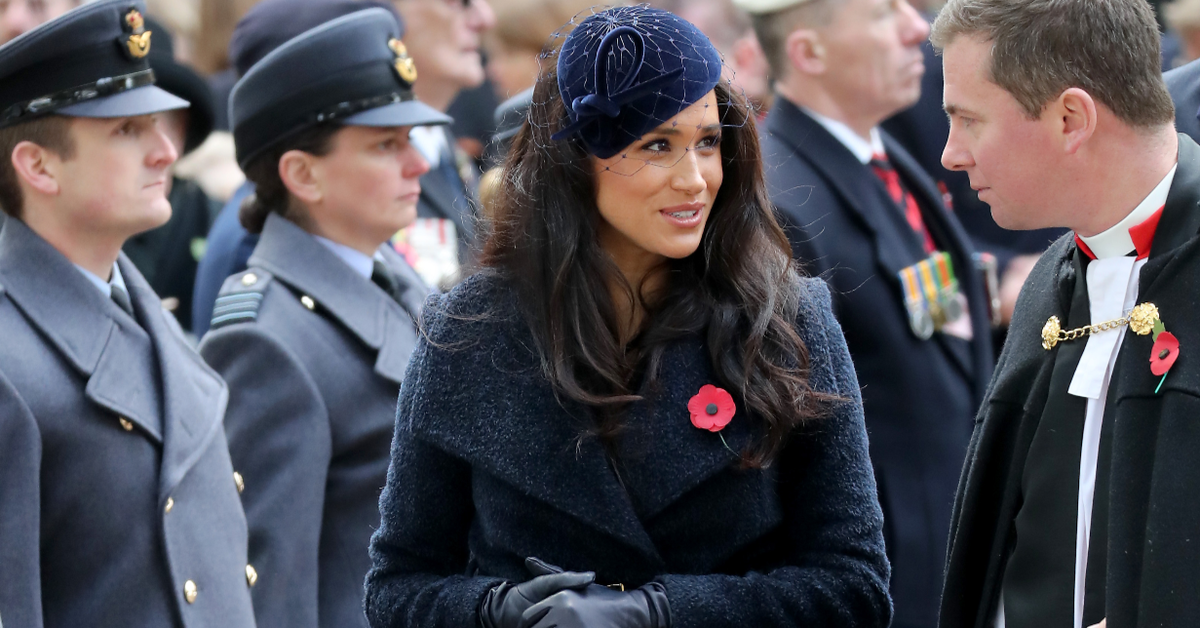 С наступлением холодов сменили гардероб на более теплый и члены королевской семьи. Для выхода в свет пасмурным ноябрьским днем со своим супругом принцем Гарри Меган Маркл выбрала элегантное пальто. Герцоги Сассекские вместе посетили маковое Поле Памяти в Вестминстерском аббатстве и отдали дань памяти павшим в Первой мировой войне. На публике бывшая голливудская актриса появилась в черном пальто с брошью в виде мака, символа памяти жертв Первой мировой войны. К нему она подобрала черные кожаные сапоги и перчатки. Заметной деталью ее образа стала темно-синяя шляпка с вуалью. Принц Гарри был одет в традиционную военную парадную форму.