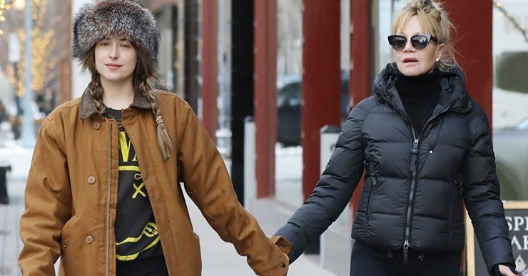 Приятно, когда мама — твоя лучшая подруга, и, судя по всему, именно такие отношения царят между Дакотой Джонсон и Мелани Гриффит. Звезду «50 оттенков серого» заметили вместе с мамой на улицах Аспена, они тепло держались за руки. Для семьи Джонсон-Гриффит уже стало традицией встречать Рождество в Колорадо, а в этом году компанию им составила подруга Голди Хоун. Для прогулки и небольшого шопинга Дакота выбрала футболку с лого группы Nirvana, свободную рыжую куртку мужского кроя и пушистую меховую шапку, а Мелани облачилась в total black, который еще больше подчеркнул точеную фигуру 60-летней актрисы.