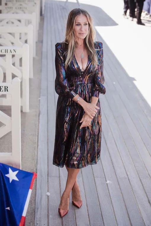 Пока в Венеции гремит закрытие кинофестиваля, в других городах мира киносмотры только в самом разгаре. Так, в канадском Торонто уже блеснули Джулия Робертс и Натали Портман. А накануне во французском Довиле своим появлением порадовала Сара Джессика Паркер. 53-летняя актриса, несмотря на долгий перелет и плотный график фестиваля, выглядит безупречно. Она выбрала блестящее платье бренда Saloni, который фокусируется на создании романтичных нарядов. Образ актриса дополнила перламутровыми лодочками.