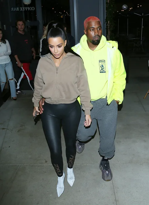 На последних фото наших героев из Лос-Анджелеса случилось невозможное: Уэст затмил свою возлюбленную. В этом ему помогли неоновые худи и ветровка и новый яркий цвет волос — розовый. А вот Ким сделала ставку на комфорт и надела плюшевую толстовку, черные спортивные легинсы и остроносые ботильоны — конечно же, созданные мужем и его командой Yeezy.