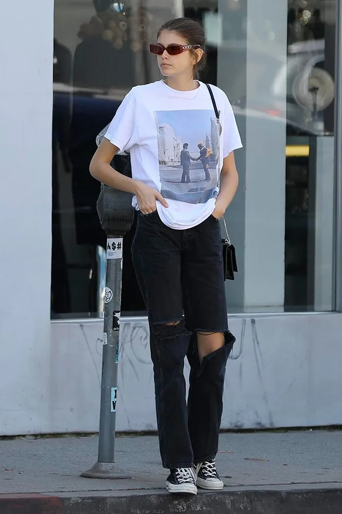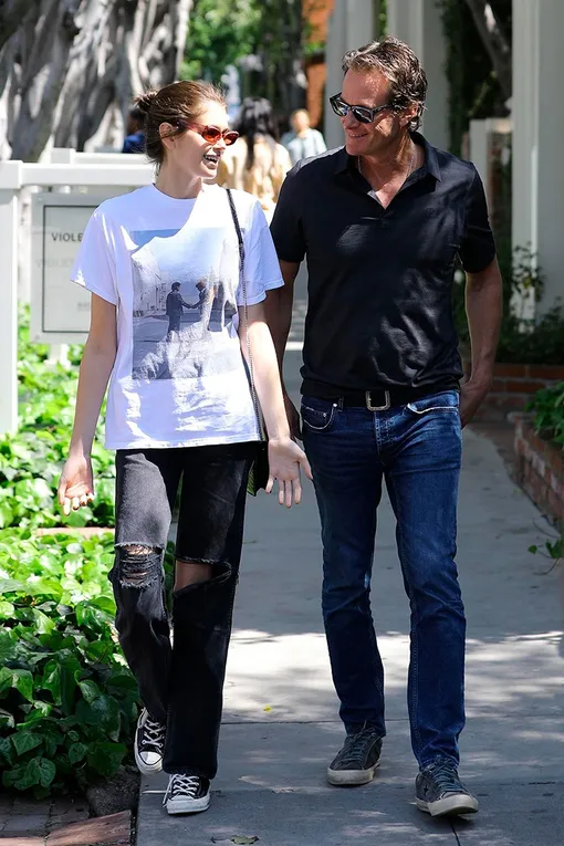После месяца показов, презентаций и вечеринок во время недель моды Кайя Гербер взяла заслуженный долгий отпуск, чтобы провести время с семьей. Модель наслаждается родным Лос-Анджелесом в компании своего отца, Рэнди Гербера. А вот Синди Кроуфорд на прогулке не была замечена. Кайя выбрала расслабленный образ: широкие джинсы, большая футболка, кеды. Изюминку ему придали ультрамодные в этом сезоне очки винтажной прямоугольной формы. Правильно подобранные аксессуары — ключ к стильному аутфиту.