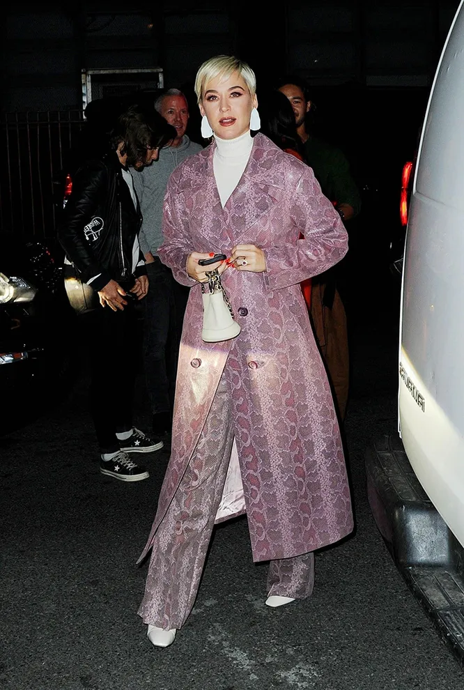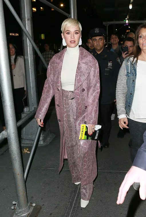 Кэти Перри сходила в театр в ультрамодном костюме с принтом под рептилию