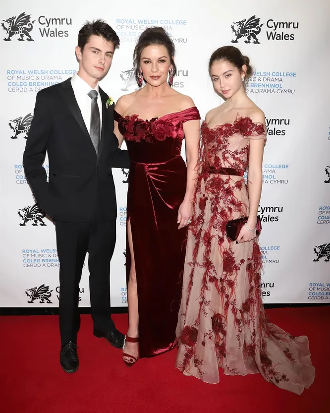 Не всегда Майкл Дуглас может составить компанию своей супруге Кэтрин Зете-Джонс на красной дорожке, и тогда актриса выходит в свет с их детьми. И если 15-летнюю Кэрис мы видим на мероприятиях довольно часто, то 18-летний Дилан — редкий гость в светской хронике. И все же на вечере в честь Национального дня Уэльса — Wales' National Day Gala — трио появилось в полном составе. 49-летняя Кэтрин блистала в бархатном платье с высоким разрезом и цветами на лифе и броских серьгах в тон платью. А Кэрис выбрала образ в схожей гамме со шлейфом и бархатным поясом и позировала перед камерами без капли скованности: определенно, девушке удалось взять все самое лучшее от звездных родителей.
