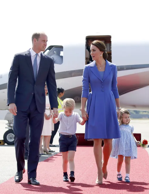 Кейт Миддлтон и принц Уильям с детьми Джорджем и Шарлоттой приземлились в Берлине
