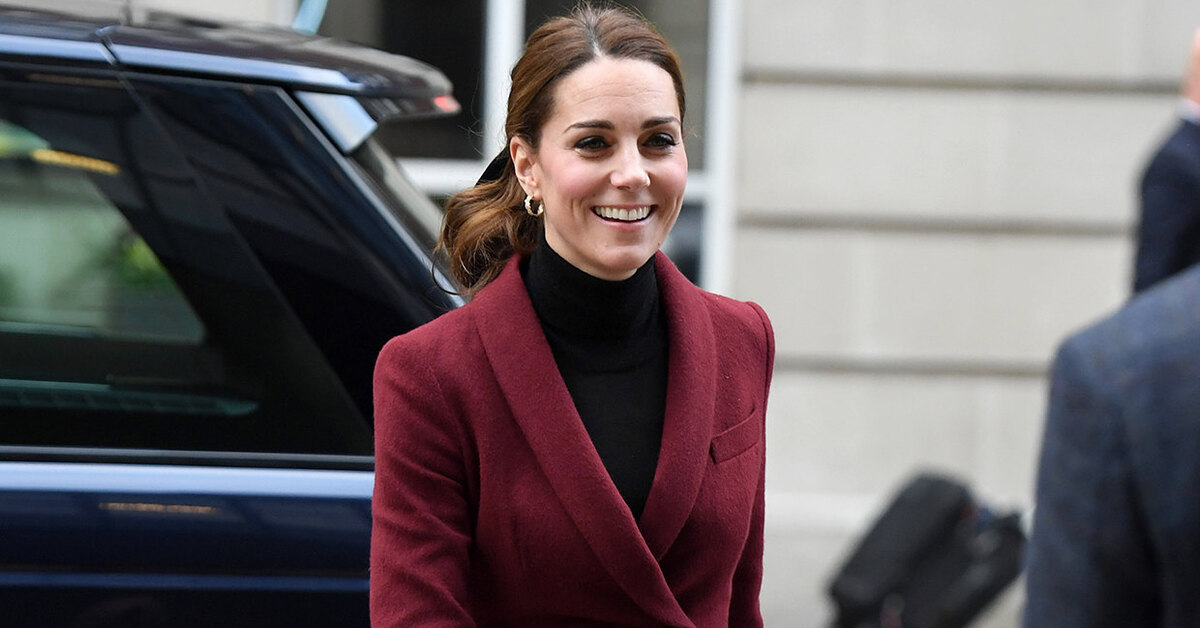 Герцогиня выбрала наряд такого же винного цвета, как у Меган Маркл