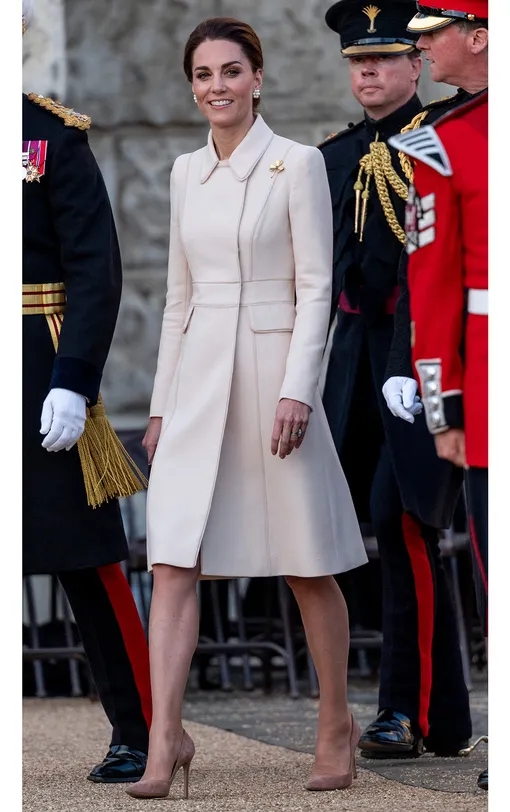 Кейт Миддлтон в кремовом пальто и серьгах-цветах приняла парад конной гвардии