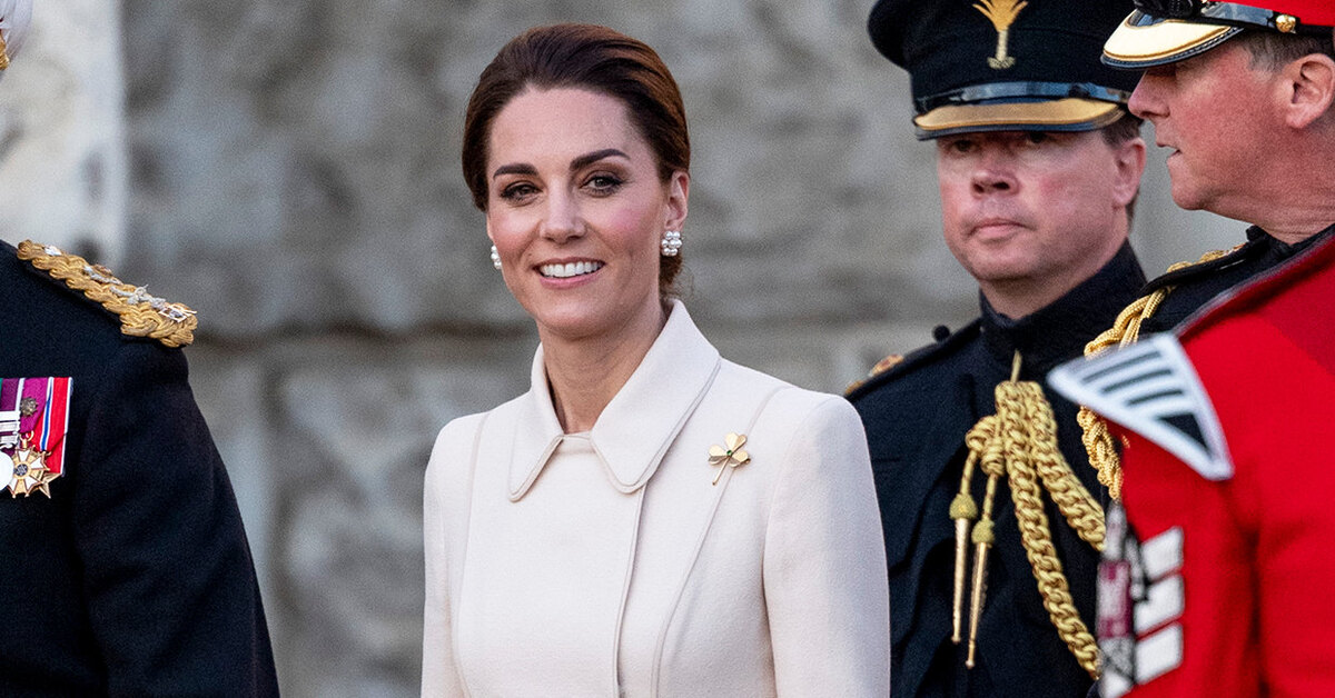Кейт Миддлтон в кремовом пальто и серьгах-цветах приняла парад конной гвардии