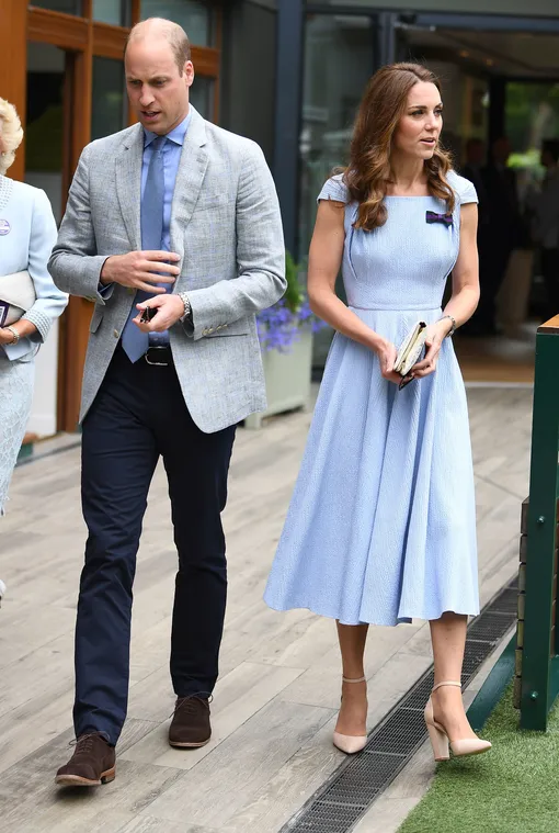 Сегодня состоялся финал Уимблдонского турнира среди мужчин. Кейт Миддлтон, как ярая поклонница тенниса, не оставила мероприятие без внимания и пришла поддержать спортсменов вместе с мужем. Для выхода герцогиня Кембриджская выбрала изготовленное на заказ платье Emilia Wickstead небесно-голубого цвета. А завершили нежный образ супруги принца Уильяма кремовые лодочки на блочном каблуке и небольшой клатч — вечная классика.