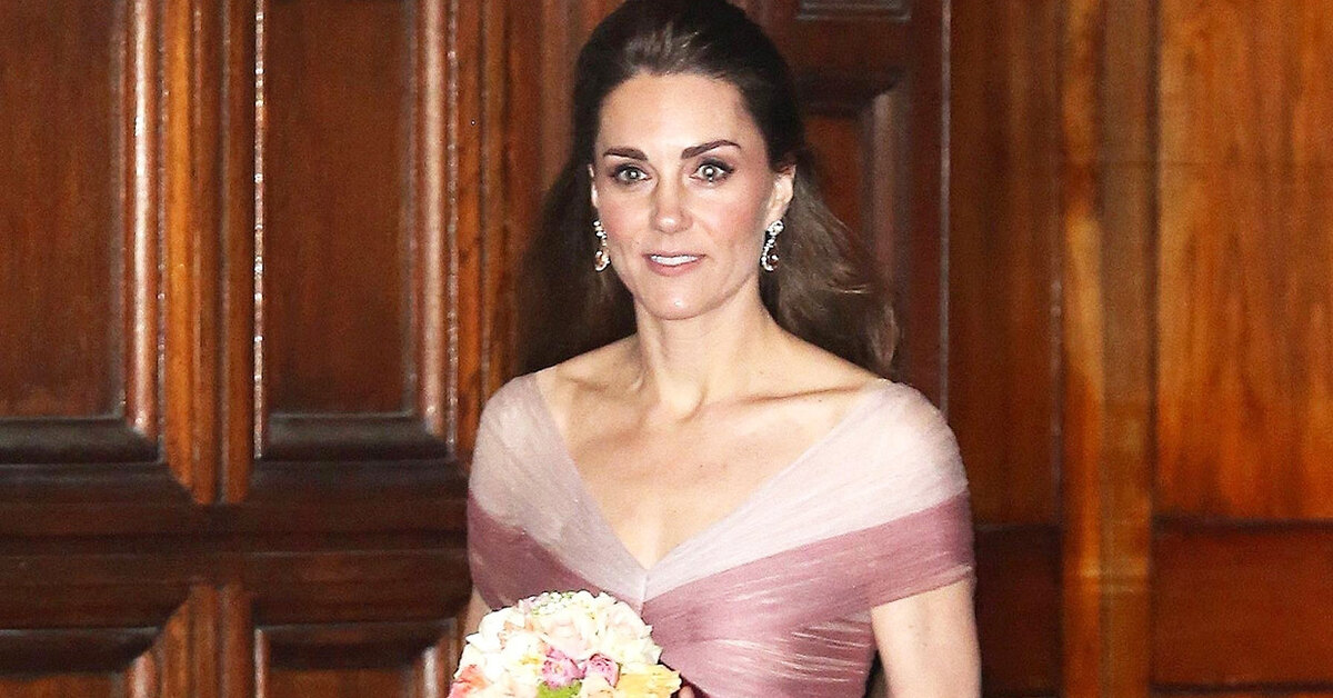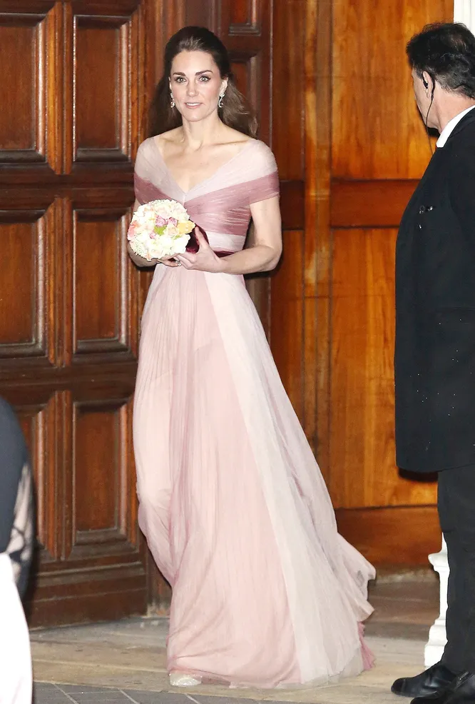 Кейт Миддлтон в розовом платье Gucci и лодочках Oscar de la Renta с глиттером на гала-ужине