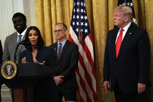 Похоже, Ким Кардашьян недостаточно коммерческого успеха в бьюти-сфере и забот многодетной мамы — дива начала активно интересоваться политической повесткой и даже настроена повлиять на тюремную реформу. Вот уже второй раз Кардашьян встретилась в Белом доме с Дональдом Трампом и его командой во главе с дочерью Иванкой и выступила перед собравшимися, обсудив дальнейшее трудоустройство бывших заключенных.
