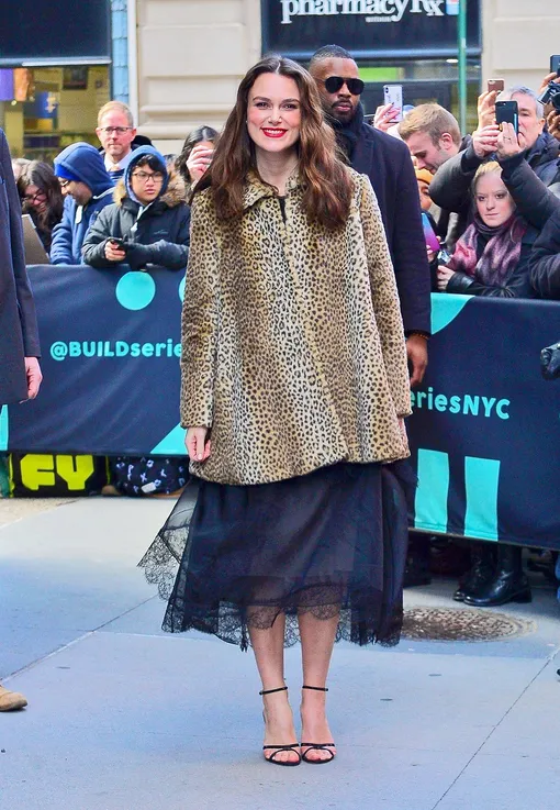 Кира Найтли в леопардовой шубе и прозрачном платье с кружевом встретилась с поклонниками