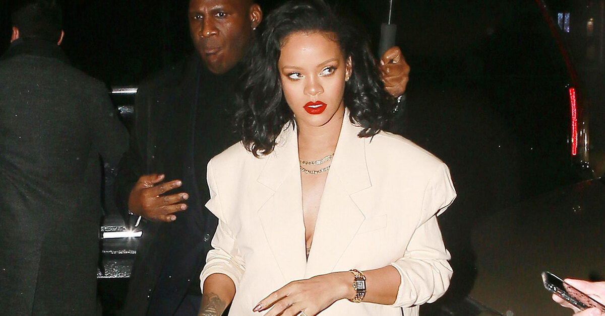 Несмотря на барбадосские корни, Рианна отлично чувствует себя в промозглом Нью-Йорке и даже в январе не думает слишком утепляться по пути на одну из местных вечеринок. Папарацци запечатлели Рири, когда та шла по мокрой от дождя и снега улице в образе в духе 1980-х: в кремовом платье-комбинации миди-длины, поверх которого накинула свободный жакет из хлопка. Дополнили образ белоснежная сумка из кожи рептилии, открытые босоножки на тонких ремешках (мама Рианны наверняка не одобрила выбор дочери) и алая помада — идеальный расслабленный вечерний выход!