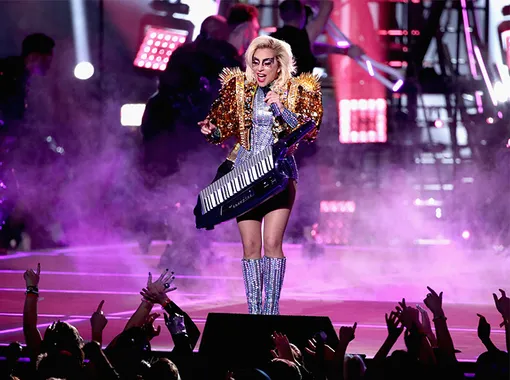 Пока на поле состязались команды «Нью-Инглэнд Пэтриотс» и «Атланта Фэлконс», «королева монстров» зажигала на сцене. Главное спортивное и едва ли не главное развлекательное событие года певица украсила сразу несколькими выступлениями, исполнив свои коронные хиты — Poker Face, Born This Way и Telephone. Не обошлось без полета над сценой, рояля в кустах, огненных взрывов и любимых артисткой футуристических образов.