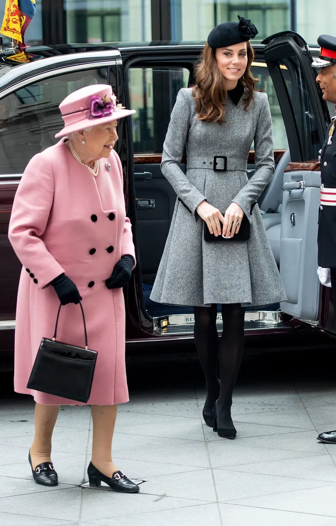 Пока Меган Маркл «завязала» с официальными выходами и взяла заслуженный декретный отпуск, делая исключения лишь для семейных мероприятий, «отдуваться» за двоих придется Кейт Миддлтон. Несколько минут назад герцогиня Кембриджская вместе с королевой Елизаветой II прибыла в лондонский Королевский колледж, чтобы официально открыть здание Буш-хаус после реставрации. Для совместного выхода с монаршей родственницей Кейт выбрала серое приталенное пальто Catherine Walker и черную шляпку с крупным цветком, а королева Великобритании появилась на публике в более ярком образе в розовой палитре авторства Stewart Parvin.